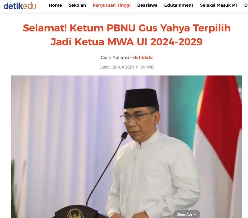 Yang lebih menyesakkan adalah Ketua MWA UI (KH. Yahya Cholil Staquf) adalah ketua umum ormas Islam terbesar di Indonesia. Salah satu anggota MWA adalah menteri yang juga ketua cabang ormas Islam terbesar kedua di Indonesia. Menteri ini punya kuasa yang besar untuk menegur, atau bahkan mencopot pejabat rektorat yang melanggar komitmen bangsa yang tercermin pembukaan konstitusi Indonesia.