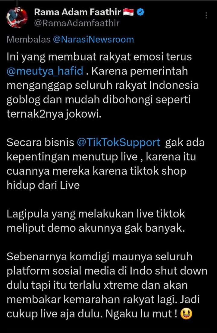 Publik menuding pemerintah memaksa TikTok untuk menutup fitur LIVE karena banyak yang menyiarkan LIVE demo.
