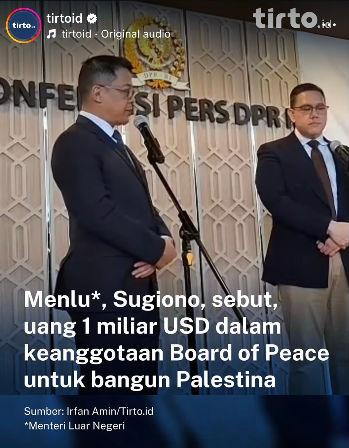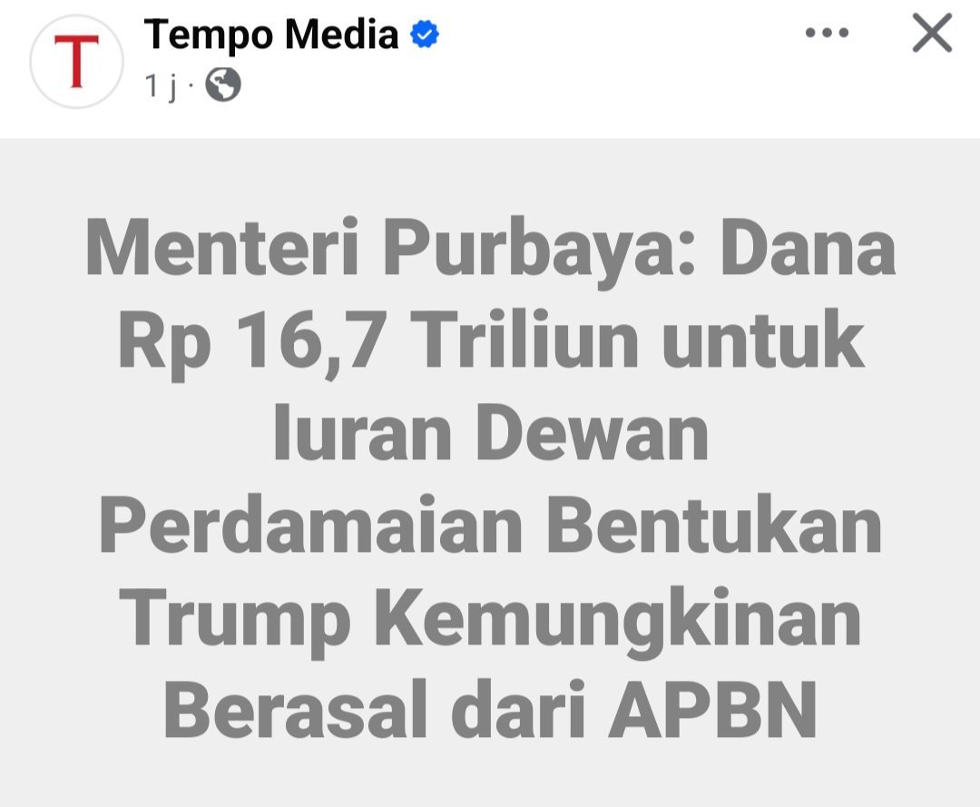 Dana itu masuk ke Board of Peace, badan internasional yang mengurus kebijakan politik, rekonstruksi, dan tata kelola yang bukan fokus ke bantuan langsung ke warga Palestina yang terdampak perang.