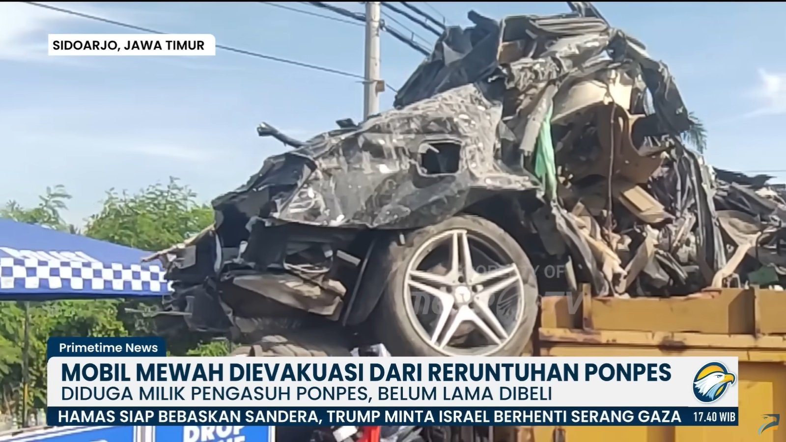 Tim SAR Gabungan mengevakuasi satu unit mobil mewah Mercedez-Benz dari reruntuhan gedung Pondok Pesantren Al Khoziny, Buduran, Sidoarjo, Jawa Timur.