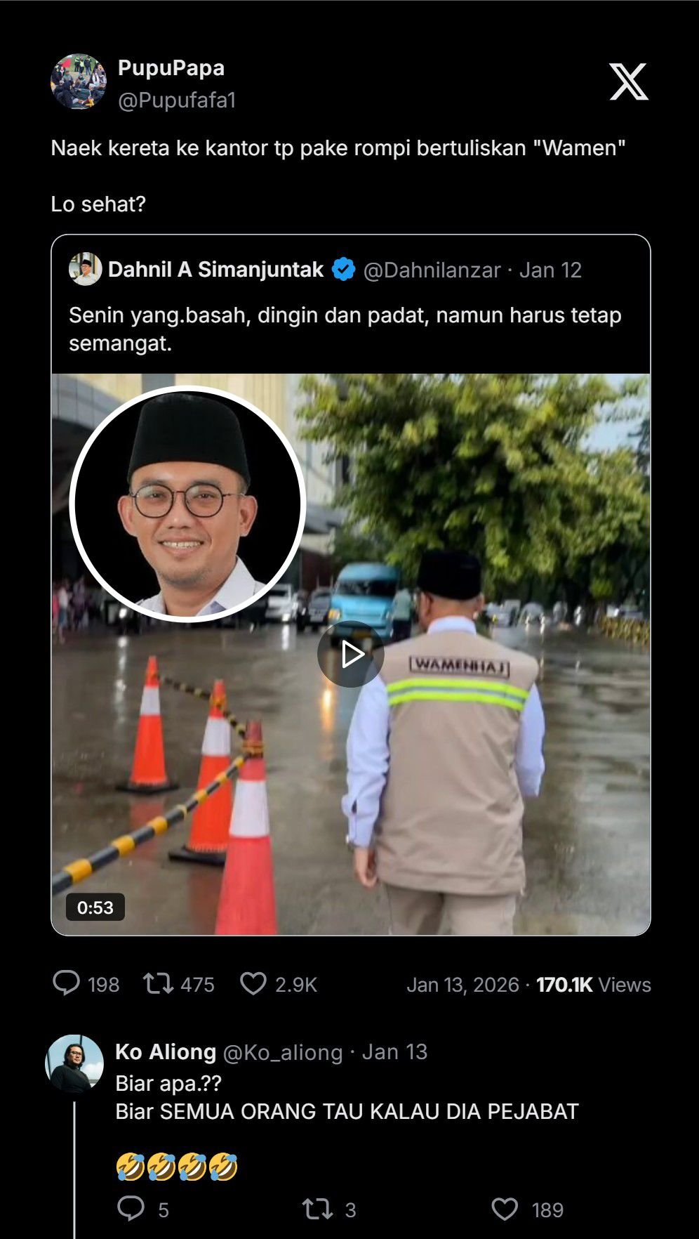 “Naek kereta ke kantor tapi pake rompi bertuliskan “WAMEN”. Lo sehat?” sentil netizen.