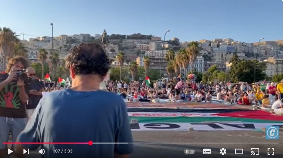 Warga Napoli menyelenggarakan aksi damai di jalanan, seperti “flashmob” di pantai Rotonda Diaz, di mana mereka berbaring di tanah sebagai bentuk peringatan korban di Gaza dan seruan untuk menghentikan kekerasan.