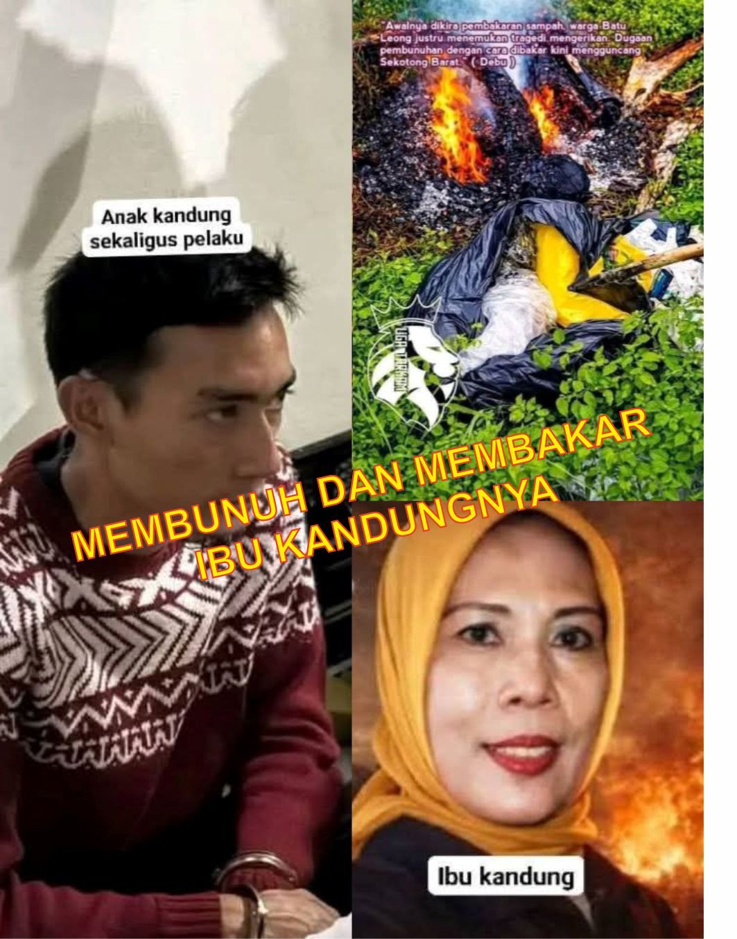 Pada ibu kandung yang mengurus dan membesarkannya, membantah saja sudah dosa, menyakiti hatinya adalah durhaka. Ini membunuhnya, apalagi membakar mayatnya lagi. Kalaupun dia bertaubat suatu saat, entah bentuk taubat seperti apa yang Allah akan menerimanya. Saya sulit membayangkannya bentuk tebusan dosanya pada Allah SWT dari kebiadaban membunuh dan membakar Ibu kandungnya.