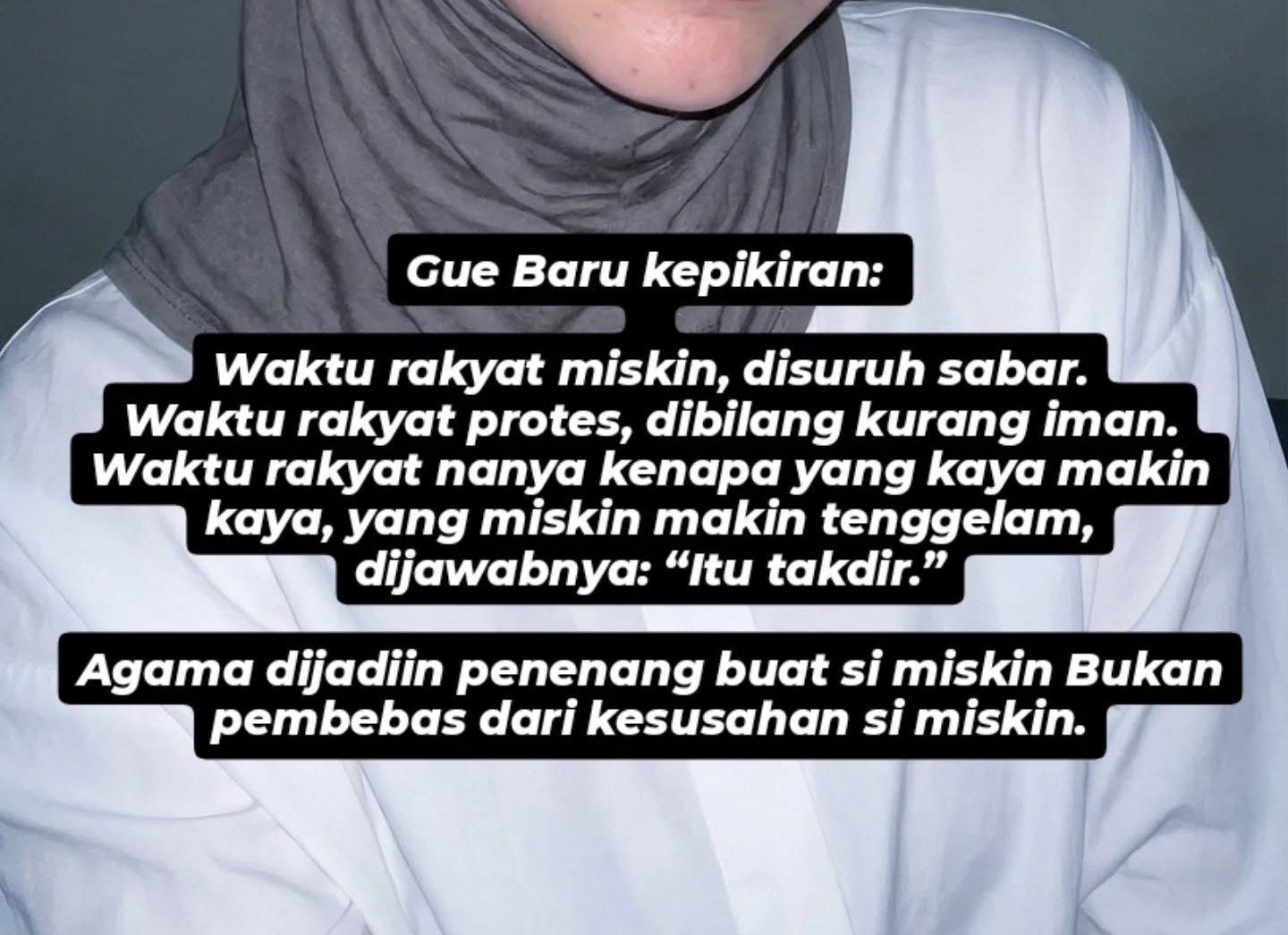 Agama yang seharusnya jadi alat perlawanan terhadap kezaliman, dipelintir jadi alat legitimasi kezaliman.