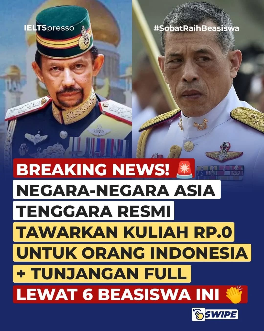 NEGARA-NEGARA ASIA TENGGARA RESMI TAWARKAN KULIAH RP 0 UNTUK WARGA INDONESIA + TUNJANGAN FULL LEWAT 6 BEASISWA INI
