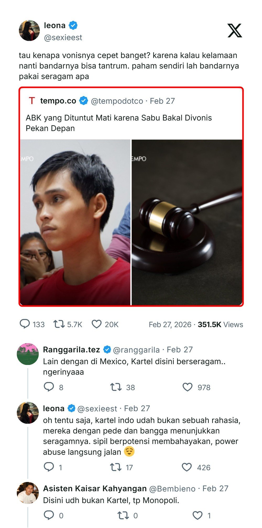- Dukungan Publik & Politik: Kasus ini menarik perhatian luas setelah ibu kandung Fandi, didampingi pengacara Hotman Paris, mengadu ke Komisi III DPR RI pada 26 Februari 2026. Komisi III DPR mengingatkan hakim untuk mengedepankan keadilan substantif dan mempertimbangkan KUHP Nasional baru, di mana hukuman mati seharusnya menjadi opsi terakhir.