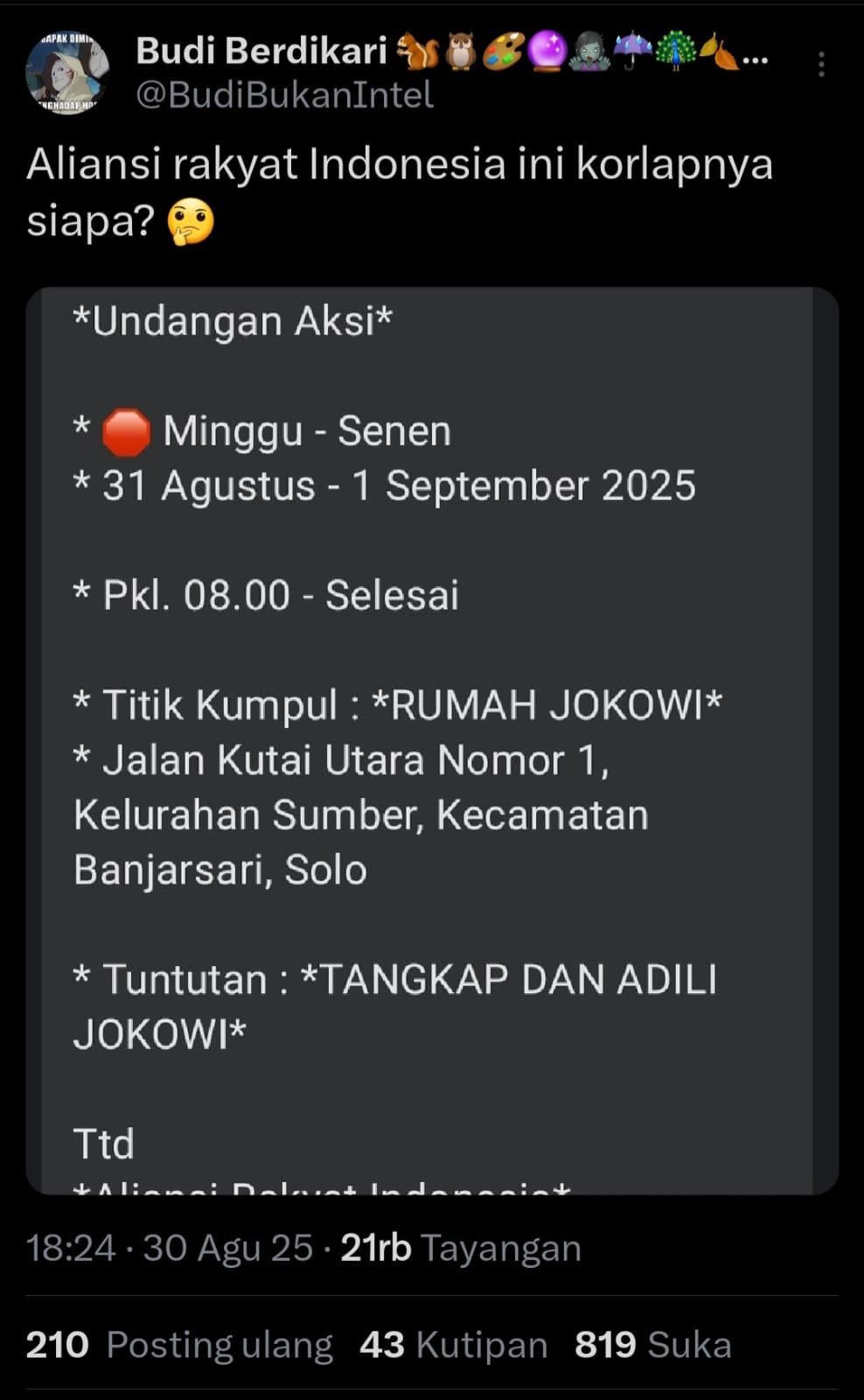 BEREDAR DI MEDIA SOSIAL undangan aksi di rumah Jokowi
