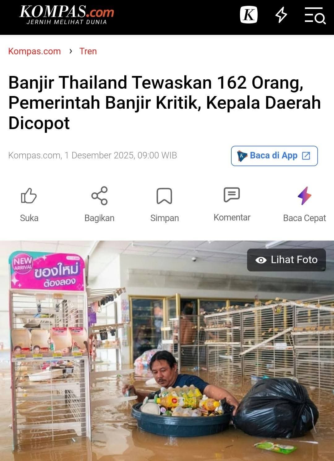 Banjir Thailand berakibat parah hingga menewaskan sedikitnya 170 orang. Perdana Menteri (PM) Thailand Anutin Charnvirakul pun meminta maaf atas kegagalan negara dalam menangani bencana tersebut.
