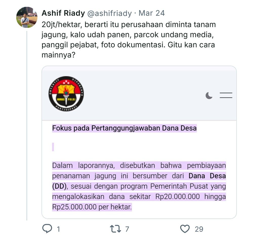Oooh pantesan TEMPO membuat judul berita “Siasat Polisi Terlihat Berhasil Menanam Jagung”.