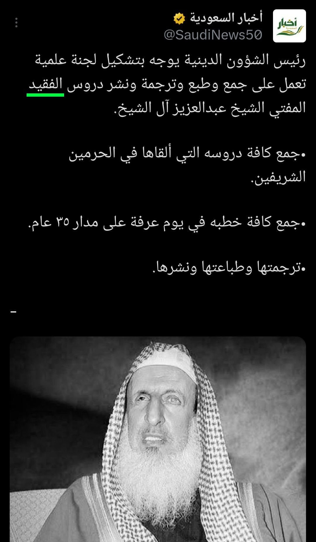 Terkait wafatnya Mufti Agung Arab Saudi, Syaikh Abdul Aziz Alu Syaikh, Saudi News memuat berita:
