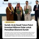 Suriah-Saudi Teken Paket Investasi Miliaran Dolar Untuk Pemulihan Suriah DUNIA ISLAM|Senin, 9 Februari, 2026Senin, 9 Februari, 2026oleh Admin Pemerintah Suriah dan Arab Saudi resmi menandatangani paket investasi besar yang mencakup
