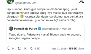 Langsung kena ulti Seputar MBG, SOSIAL MEDIA|Senin, 16 Maret, 2026oleh Admin Buzzer MBG 02 nyrocos:“Sering kita kritik MBG, tapi disaat yang sama kita