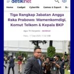 Tiga Rangkap Jabatan Politikus Gerindra Angga Raka Prabowo: Kepala BKP, Wamenkomdigi, dan Komisaris Utama Telkom BERITA NASIONAL|Kamis, 18 September, 2025Kamis, 18 September, 2025oleh Admin Poliitkus Partai Gerindra Angga Raka Prabowo baru saja dilantik sebagai Kepala Biro