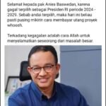Selamat Untuk Pak Anies CATATAN|Kamis, 6 November, 2025Kamis, 6 November, 2025oleh Admin Selamat kepada pak Anies Baswedan, karena gagal terpilih sebagai Presiden RI periode