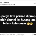 TERUNGKAP…. SOSIAL MEDIA|Rabu, 22 Oktober, 2025Rabu, 22 Oktober, 2025oleh Admin TERUNGKAP…. Rupanya kita pernah dipimpin oleh alumni ke-hutang-an, bukan kehutanan 😁😁 Satu