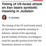 “Waktu Serangan AS-Israel ke Iran Memiliki Makna Simbolis dalam Yudaisme Saat Netanyahu Merujuk pada Hari Raya Purim” INTERNASIONAL|Minggu, 1 Maret, 2026Minggu, 1 Maret, 2026oleh Admin Website CNN Amerika kemarin (28/2/2026) memposting tulisan berjudul “Waktu Serangan AS-Israel ke