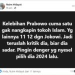 Dibanding Jokowi, Kelebihan Prabowo Cuma Satu CATATAN|Rabu, 25 Februari, 2026Rabu, 25 Februari, 2026oleh Admin Aktivis Islam ustadz Nuim Hidayat menyebut kelebihan Presiden Prabowo dibanding era Jokowi