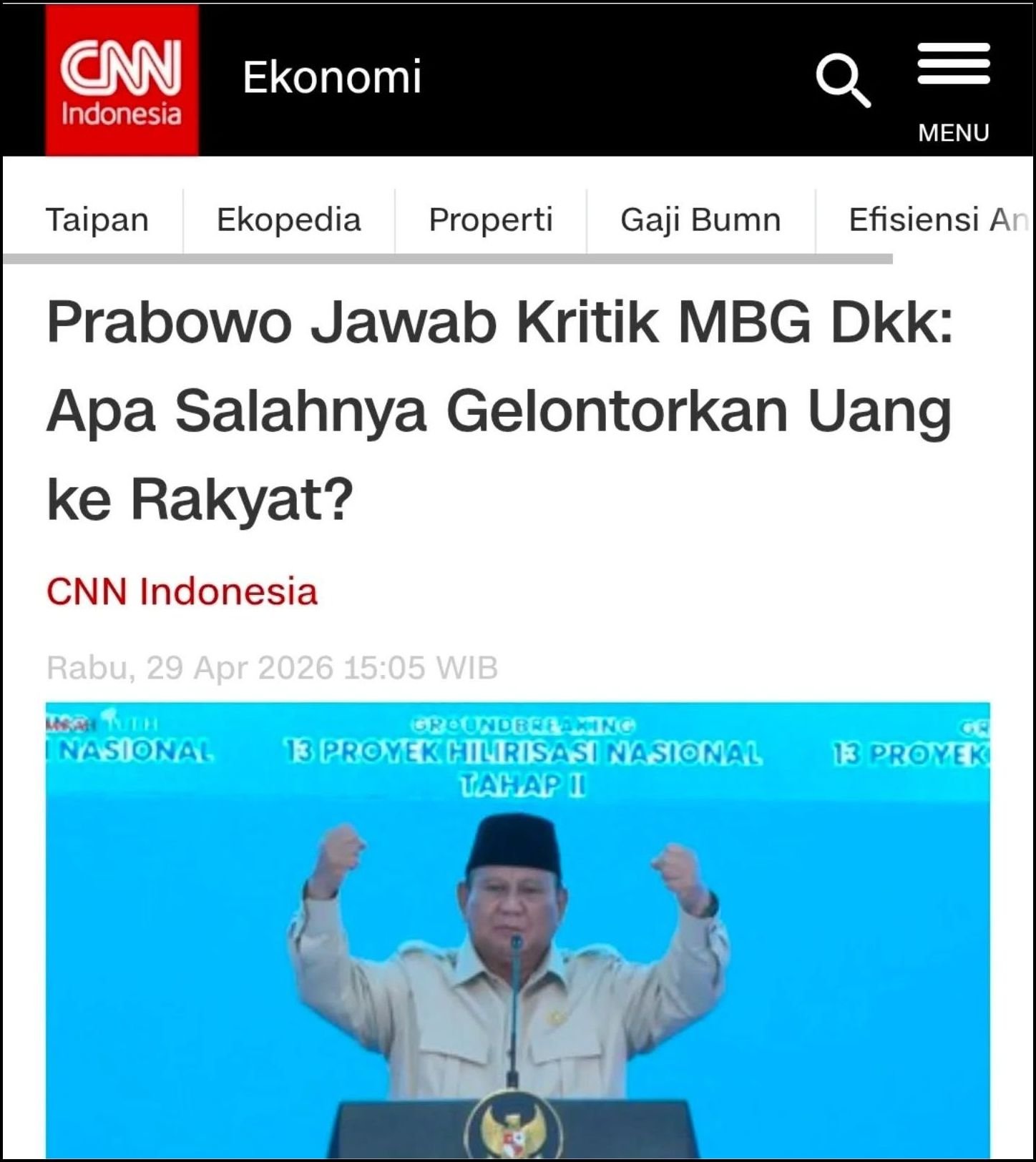Kalau mau gelontorkan uang ke rakyat namanya BLT Pak Prabowo