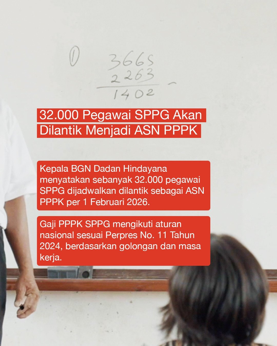 Pemerintah menyebut 32.000 pegawai SPPG akan dilantik sebagai ASN PPPK per 1 Februari 2026.