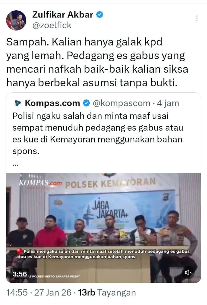 Kasus salah tangkap pedagang Es Kue Jadul (Es Gabus) memasuki babak baru yang lebih emosional.