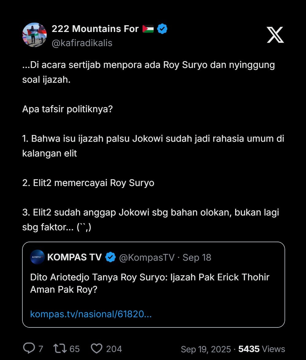 - Bahwa isu ijazah palsu Jokowi sudah jadi rahasia umum di kalangan elit