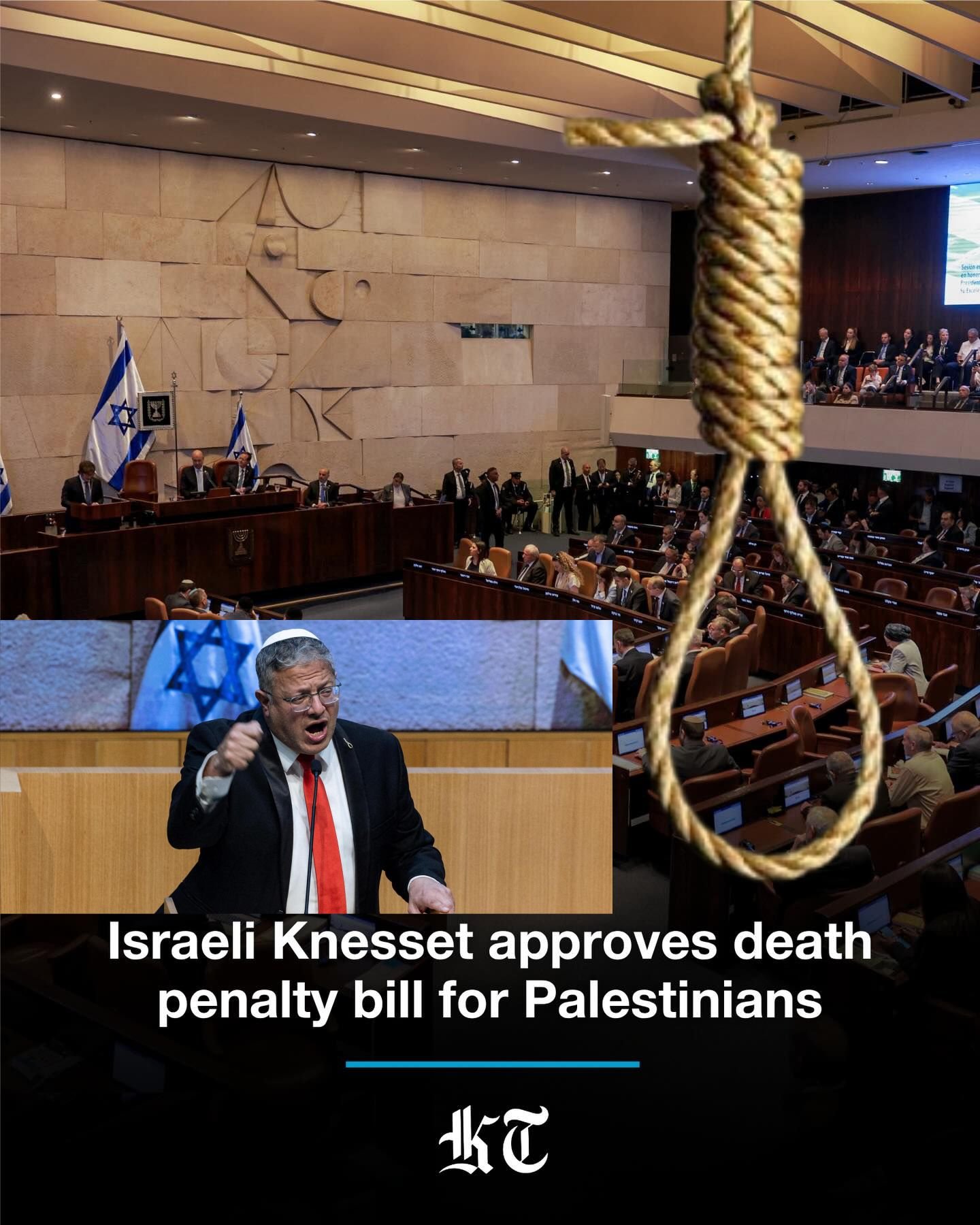 Parlemen Israel (Knesset) secara resmi mengesahkan undang-undang hukuman mati bagi warga Palestina yang divonis melakukan aksi teror mematikan.