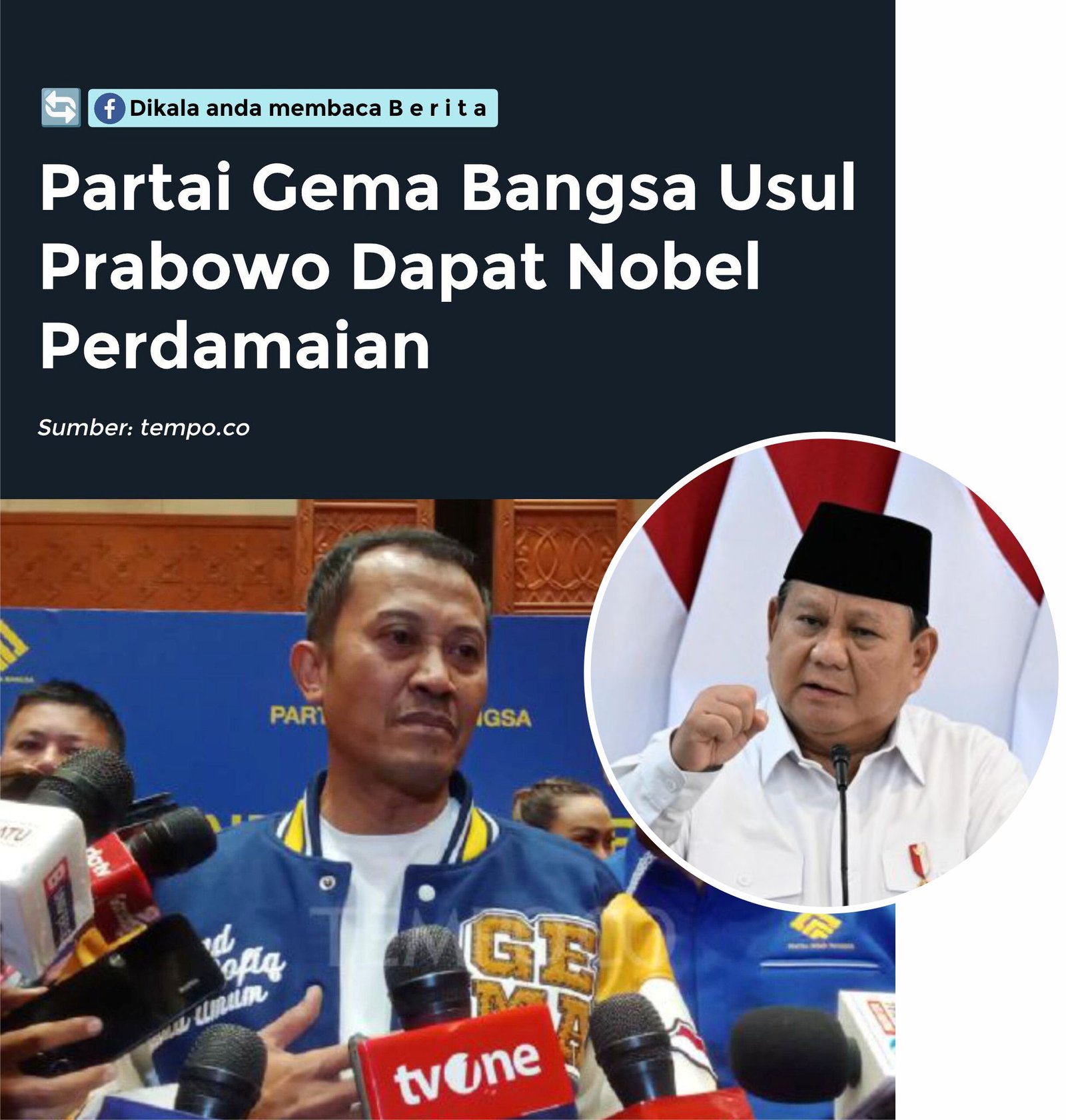 Partai Gema Bangsa mengusulkan agar Presiden Prabowo Subianto mendapat Nobel Perdamaian.