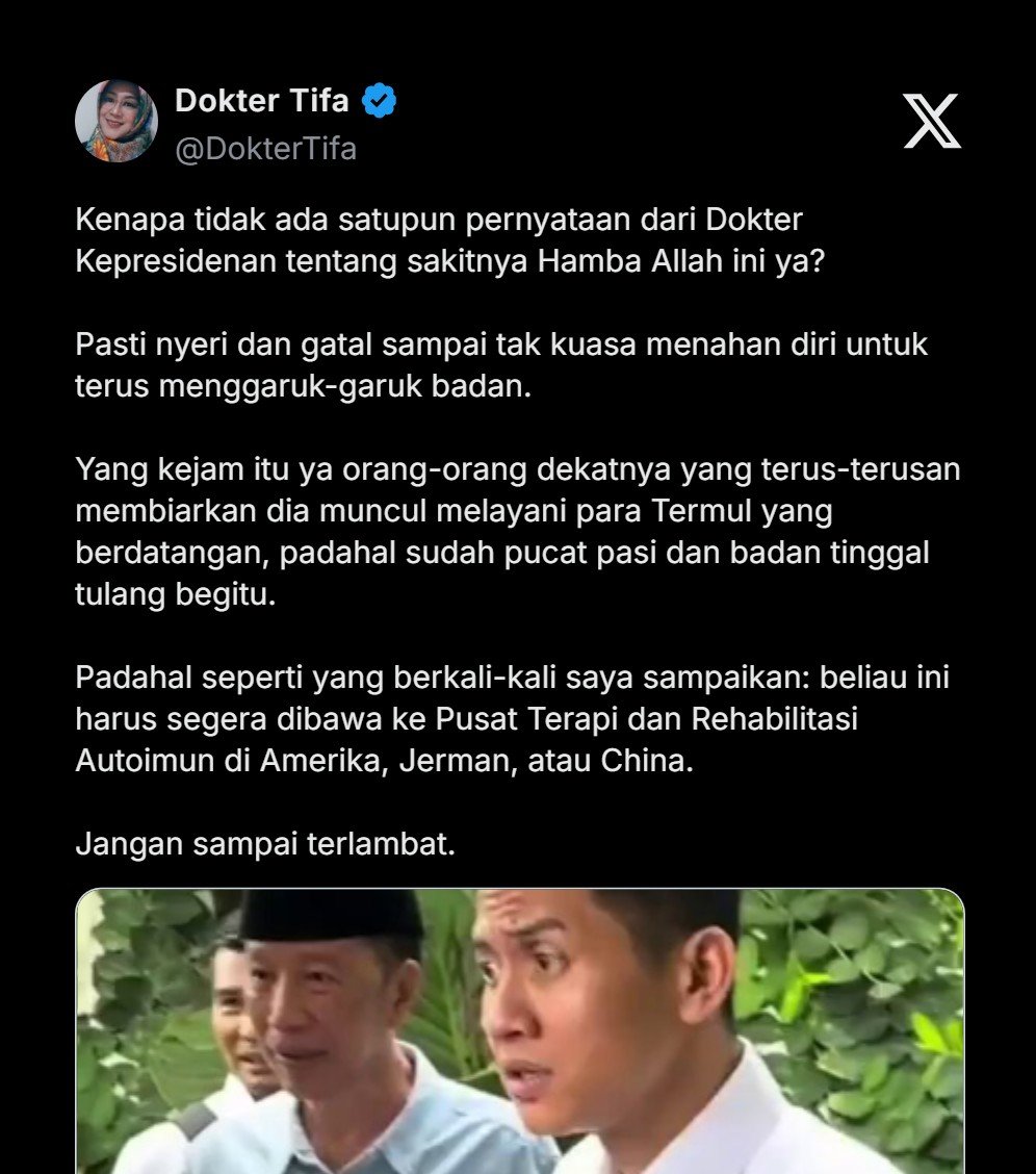 Padahal seperti yang berkali-kali saya sampaikan: beliau ini harus segera dibawa ke Pusat Terapi dan Rehabilitasi Autoimun di Amerika, Jerman, atau China.