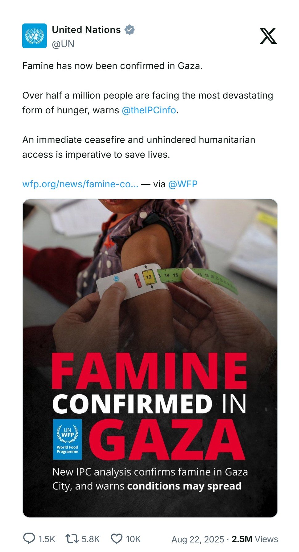 - Menjelang siang, Perserikatan Bangsa-Bangsa mengumumkan bahwa Gaza telah mencapai titik kelaparan, setelah berbulan-bulan pengepungan dan kelaparan sistematis yang diberlakukan oleh pendudukan Zionis terhadap lebih dari dua juta orang, di tengah kebisuan internasional dan Arab yang memalukan.