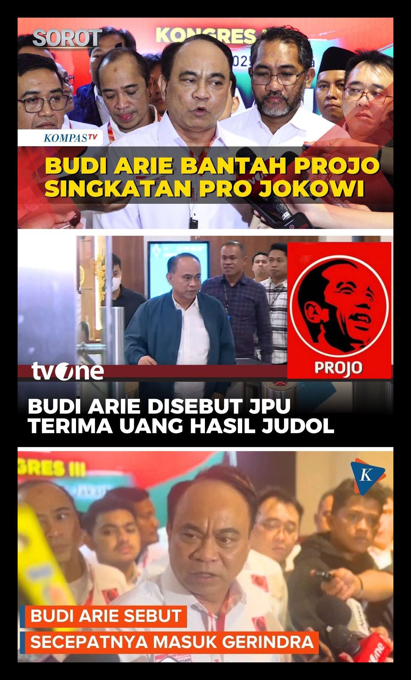 “Rencana beralihnya Saudara Budi Ari Projo ke Gerindra kita memaknainya dalam dua hal. Yang pertama bahwa Projo dalam hal ini pribadinya Budi Arie ingin mencari perlindungan secara politik dan secara hukum, karena biar bagaimanapun saat ini Budi Arie statusnya di kepolisian terkait dengan judi online masih panas-panas seperti panas-panas kopi di pagi hari,” ungkap Ferdinand dikutip dalam tayangan Kompas TV, Minggu (2/11/2025)