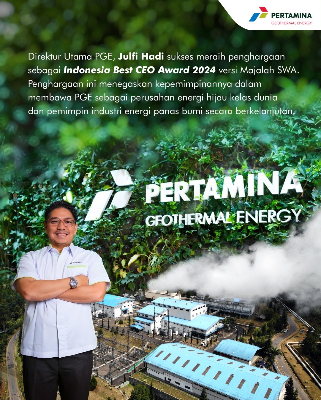 Kini Julfi menjabat Direktur Utama Pertamina Geothermal Energy (PT PGE) –anak usaha Pertamina.
