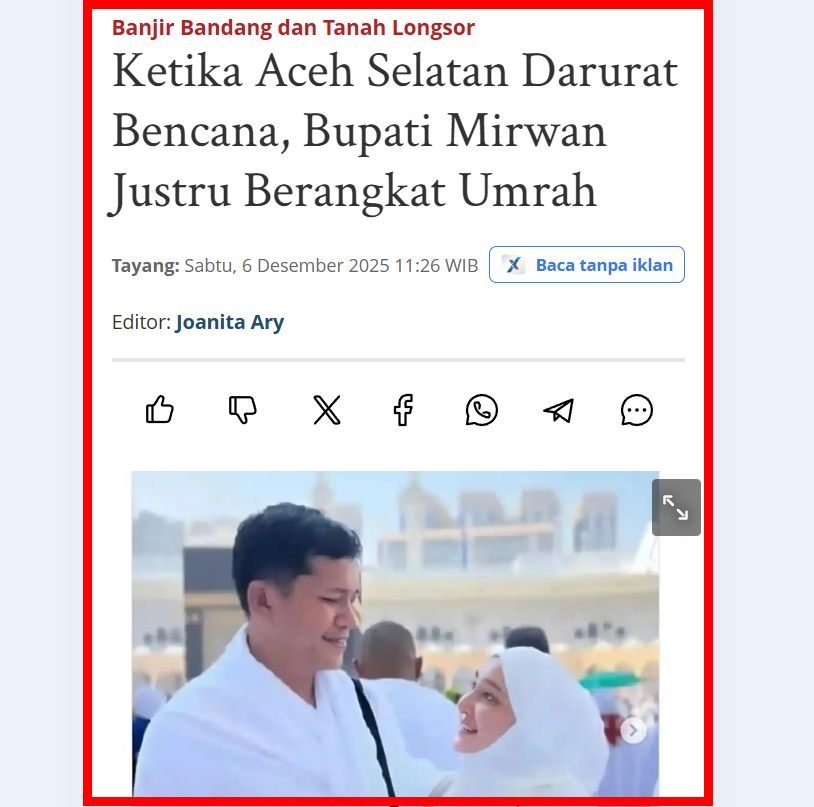 Jadi gimana warga Aceh Selatan? Bupati kalian kapan pulang dari umroh? Dia merasa bersalah tidak? Atau kalian akan tetap jejeritan membelanya? Atau Bupatinya sendiri yg mau ikutan komen di kolom postingan ini? Silahkan deh.