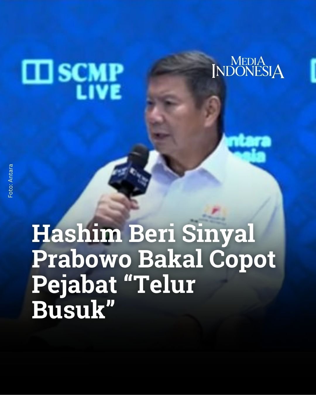 “Sekarang, tinggal masalah membersihkan ‘telur-telur busuk’ ini. Terus terang, akan ada pejabat yang dicopot, saya rasa denda sangat besar akan dijatuhkan,” kata Hashim menjawab pertanyaan moderator seputar pengunduran diri sejumlah pejabat kunci di Otoritas Jasa Keuangan (OJK) dan pejabat di Bursa Efek Indonesia (BEI), baru-baru ini.