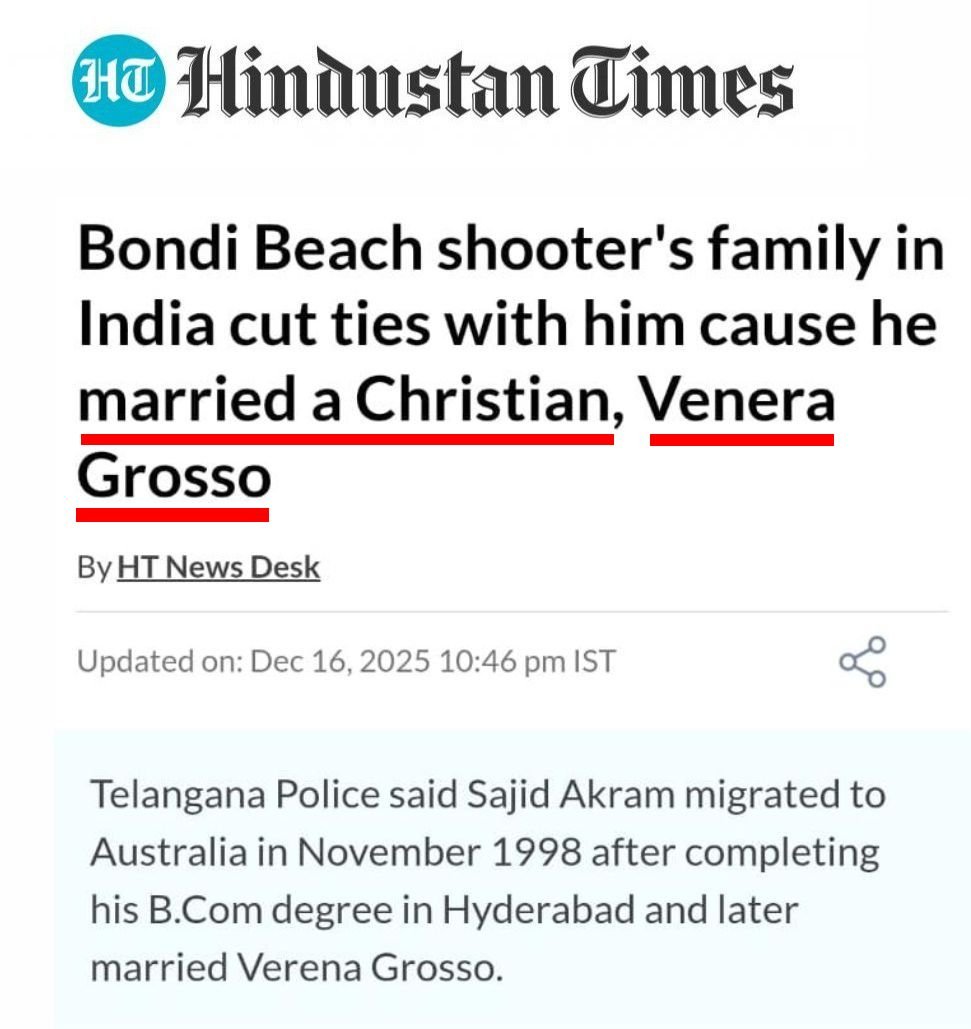 - Di Australia Sajid Akram menikah dengan wanita Kristen asal Italia, Verena Grosso.