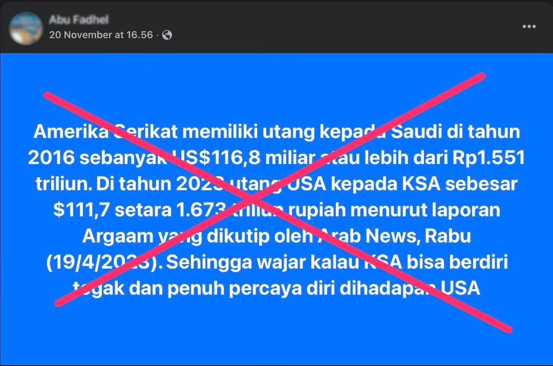 Meskipun angka USD 111,7 milyar โ itu di 2023, terbaru di September 2025 adalah USD 134milyar โ itu terdengar sangat besar bagi orang awam, padahal angka ini sangat kecil jika dibandingkan dengan total utang nasional USA yang saat ini sudah mencapai USD 38.000 milyar (IDR 608.000 Trilyun).