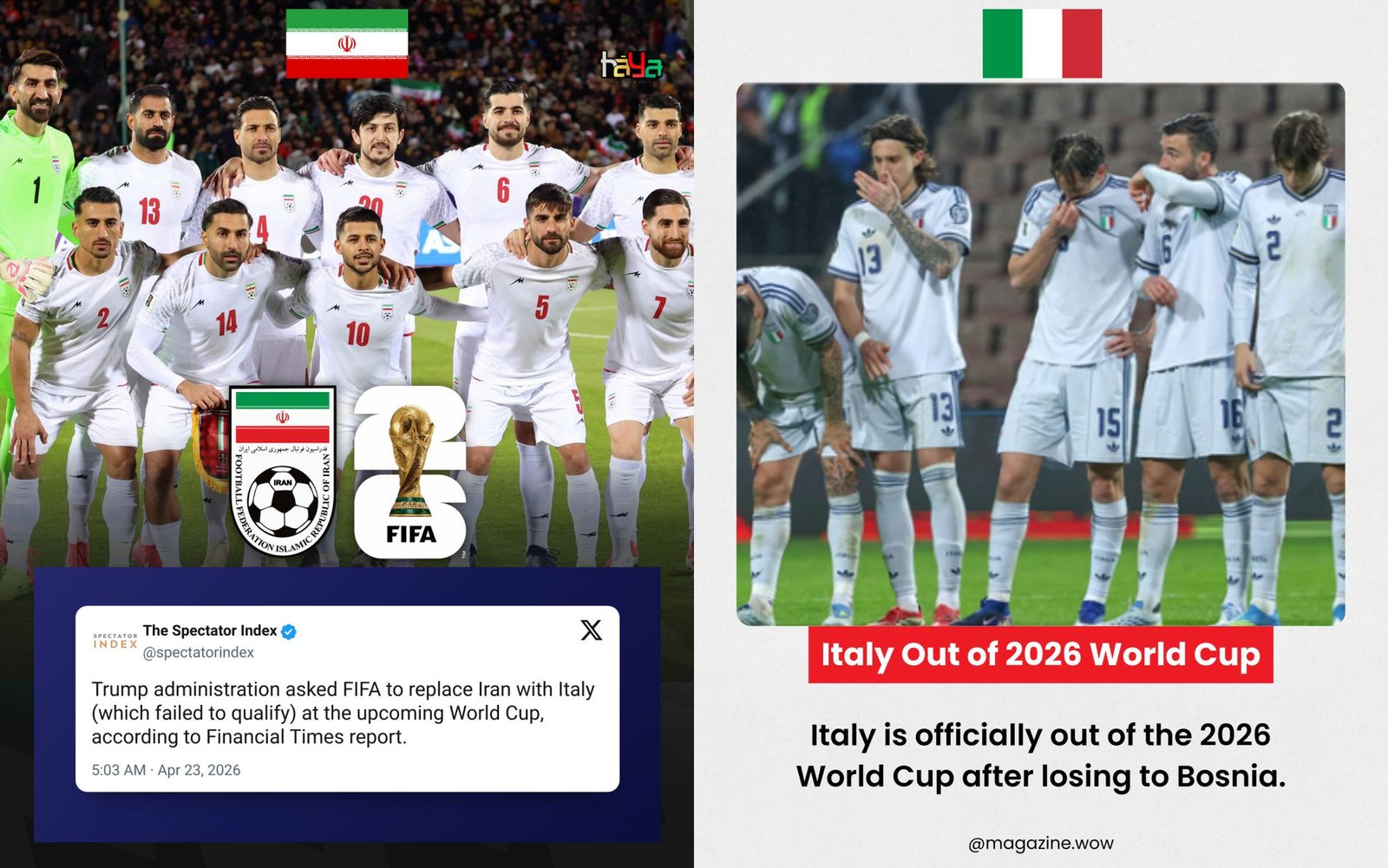 Berdasarkan laporan dari Financial Times (23 April 2026), utusan khusus Amerika Serikat Paolo Zampolli memang telah menyarankan kepada Presiden Donald Trump dan Presiden FIFA Gianni Infantino agar Italia menggantikan posisi Iran di Piala Dunia 2026.