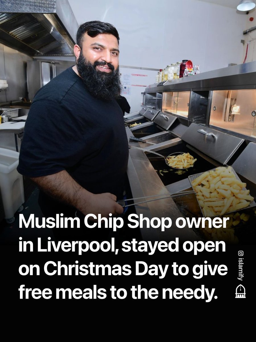 Seorang pemilik toko ikan dan kentang goreng Muslim dari Liverpool, Inggris, tetap buka pada Hari Natal untuk memberikan makanan gratis kepada mereka yang membutuhkan dan kelompok rentan.