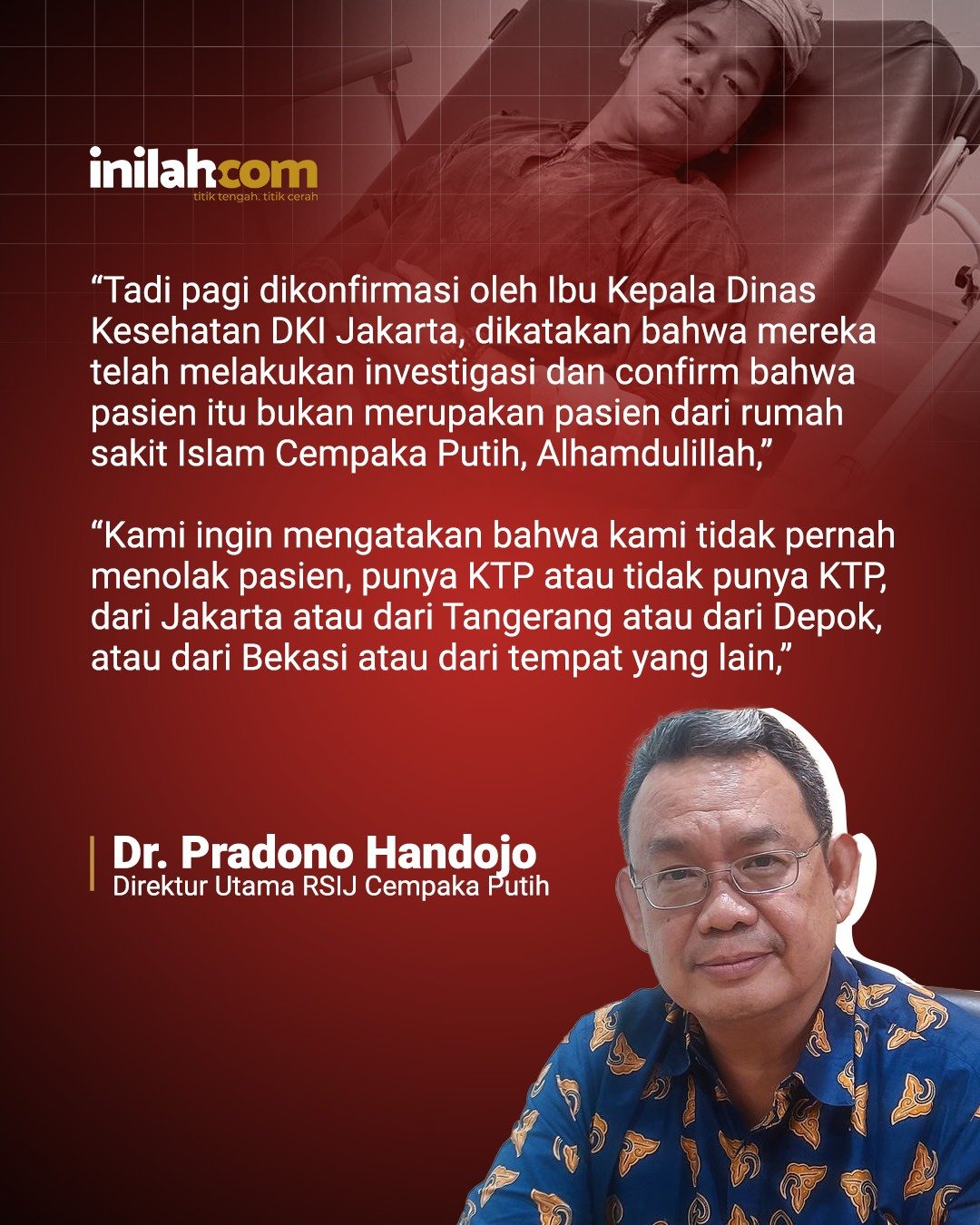 Manajemen RSIJ Cempaka Putih juga telah menyampaikan pernyataan resmi bahwa tidak pernah merawat pasien tersebut. Tidak ada pasien atas nama Repan yang tercatat menerima layanan.