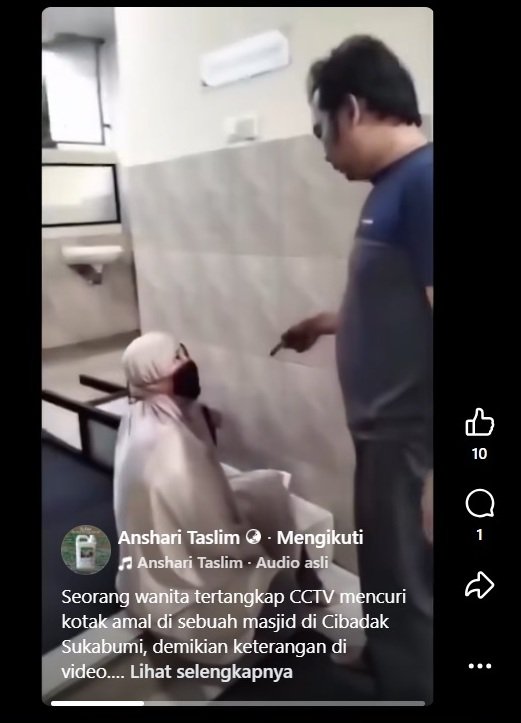 Seorang wanita tertangkap CCTV mencuri kotak amal di sebuah masjid di Cibadak Sukabumi, demikian keterangan di video.