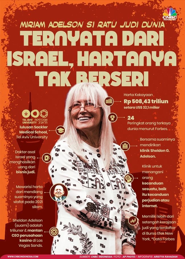 - Miriam Adelson dijuluki “Ratu judi global”.