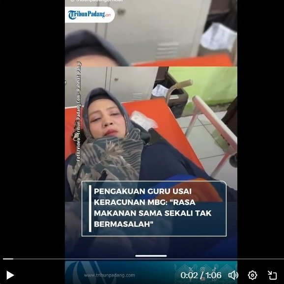 Seorang guru TK bernama Weri Oktavia, pendidik di TK Aisyah Kampung Tangah, Agam, Sumatera Barat, juga menjadi korban keracunan MBG pada Rabu (1/10/2025).