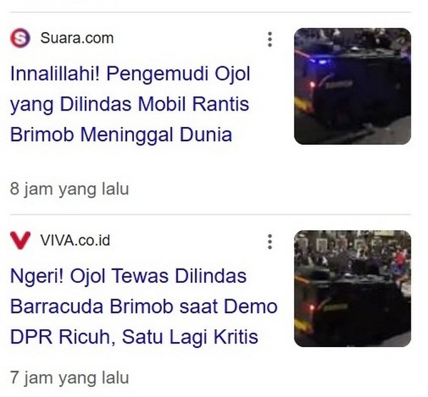Video kematian Affan sontak beredar luas. Dia dilindas kendaraan taktis (Rantis) Brimob setelah sebelumnya ditabrak kendaraan yang sama.