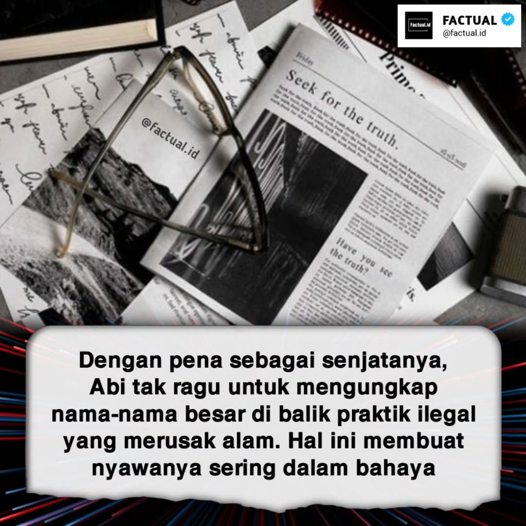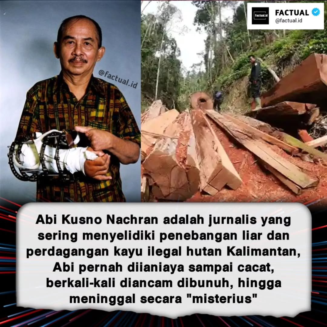 Kisah hidup Abi Kusno Nachran adalah potret nyata bagaimana sebuah pena bisa lebih menakutkan daripada senjata. Pria asal Kalimantan ini dikenal sebagai jurnalis yang berani menantang para pemodal besar yang merusak hutan. Bertahun-tahun ia menuliskan laporan tajam tentang praktik pembalakan liar, membongkar jaringan mafia kayu, hingga menelusuri aliran uang para cukong yang selama ini tak tersentuh.