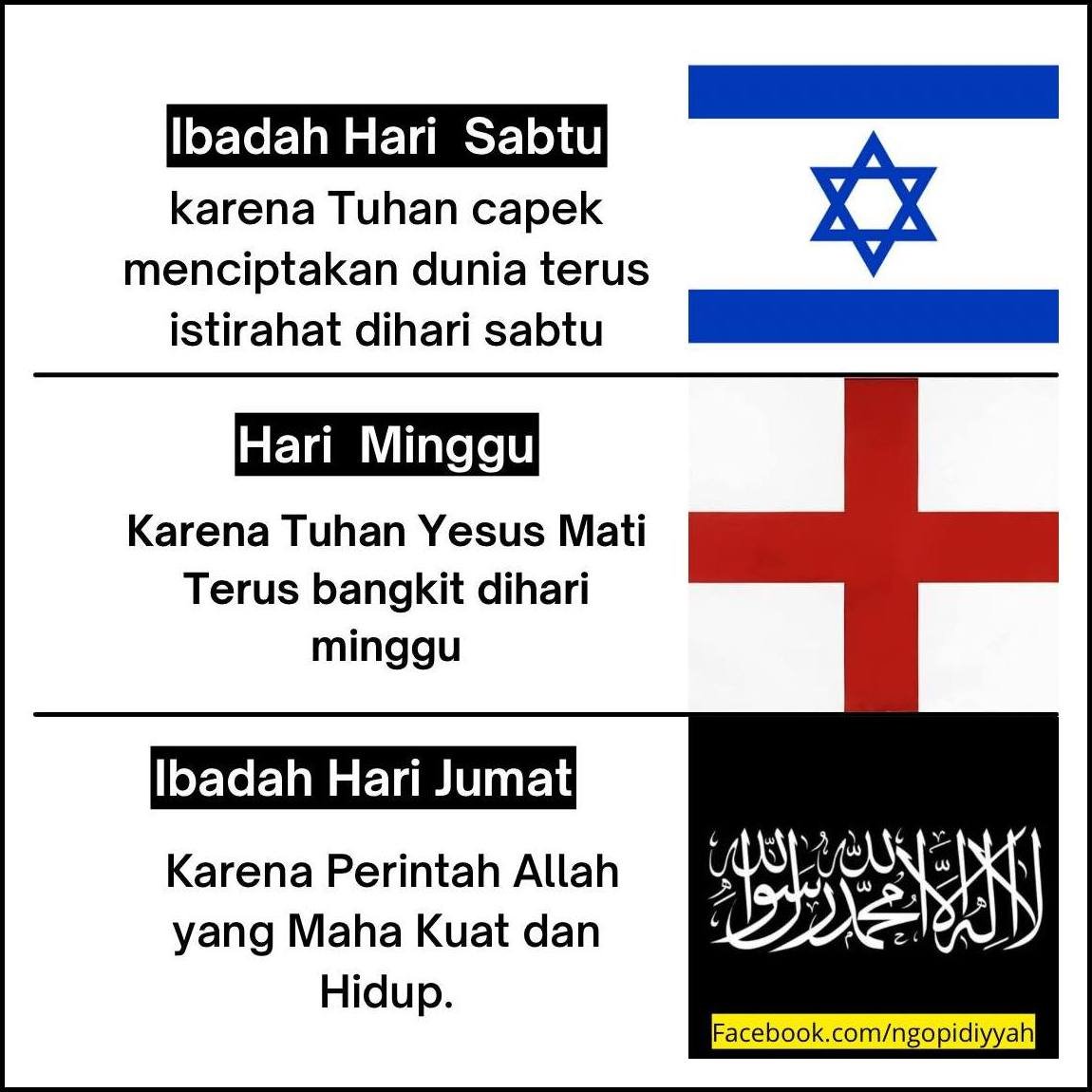 Intinya: mereka yakini Tuhan mati dikayu Salib dihari Jumat, lalu bangkit di hari Minggu. Jadi, Minggu dijadikan hari suci.