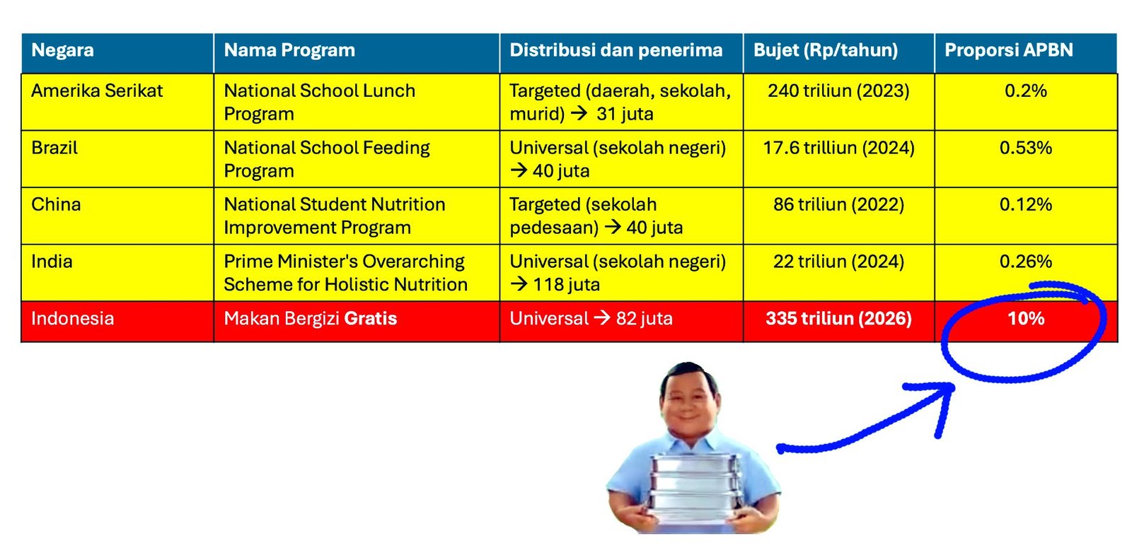 - DI NEGARA LAIN ANGGRAN MBG TIDAK ADA YANG MELEBIHI 1% APBN