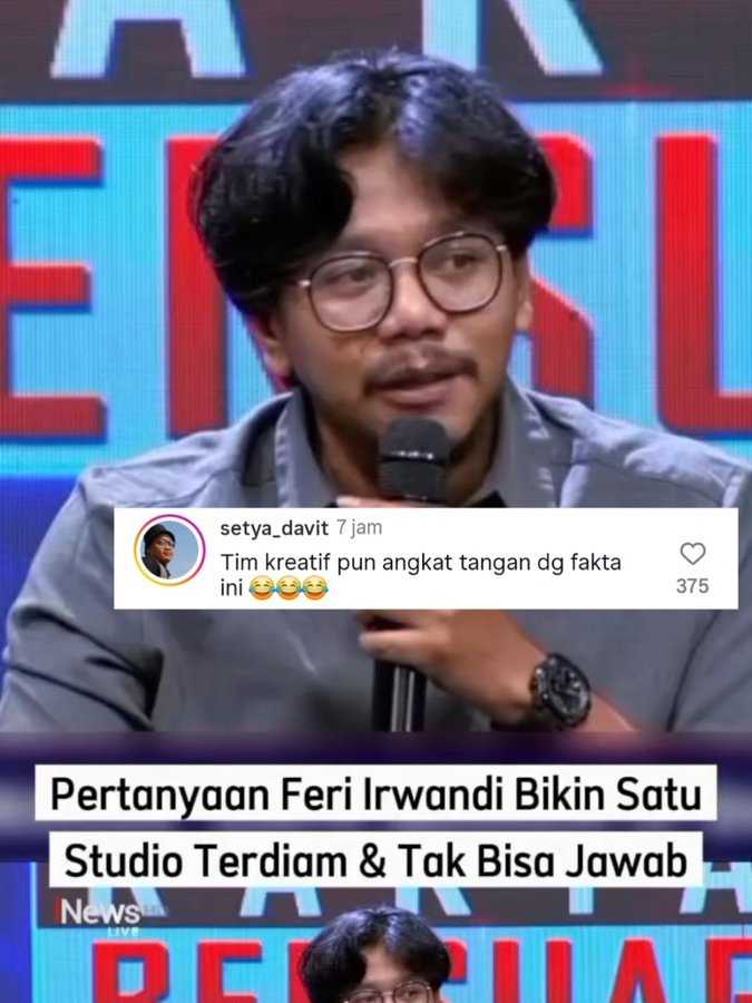 Pertanyaan Ferry Irwandi Bikin Satu Studio Terdiam & Tak Bisa JawabAdminRabu, 3 September, 2025Rabu, 3 September, 2025VIDEO Pertanyaan Ferry Irwandi (di acara RAKYAT BERSUARA iNesTV) Bikin Satu Studio Terdiam & Tak Bisa Jawab. [VIDEO] pic.twitter.com/l2VwRGBkMi— Some Thread (@somexthread) September 3, 2025 Jangan LewatkanJokowi lama-lama kek mayat idupNgelus dadaKISAH DAHLAN ISKAN ALAMI RUGI RP 2 TRILIUNMenjamin keamanan IsraelPantesan Pandji “diburu” untuk jadi TersangkaDikasih bahasa jin Mama Gufron baru pada diem 😂