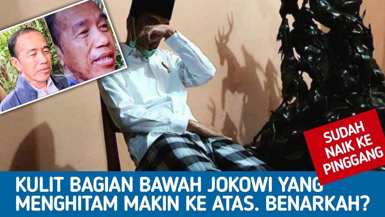 Perubahan fisik Jokowi sungguh di luar nalar medis. Kulit yang menghitam pekat seperti hangus, merambat ganas dari pinggang, punggung, hingga merusak wajah.