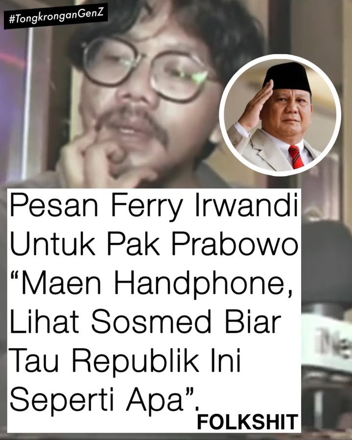 Pesan Ferry Irwandi Untuk Prabowo: “Maen Handphone, Lihat Sosmed Biar Tau Republik Ini Seperti Apa”