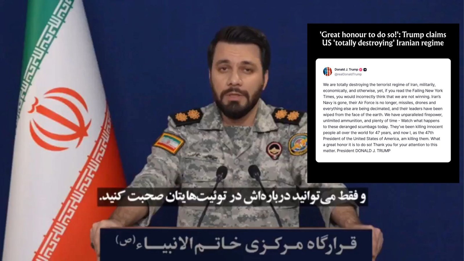 Jubir Militer Iran kasih pesan menohok untuk Trump DALAM BAHASA INGGRIS, menanggapi klaim kemenangan yang disampaikan Donald Trump di akun medsosnya.
