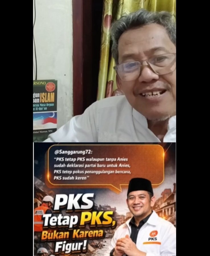 Konten kreator Pak Suharsono menanggapi pernyataan “PKS tetap PKS walaupun tanpa Anies. PKS tetap PKS, bukan karena figur. PKS sudah keren”.